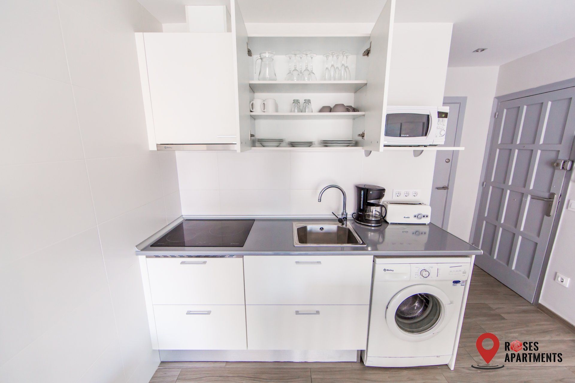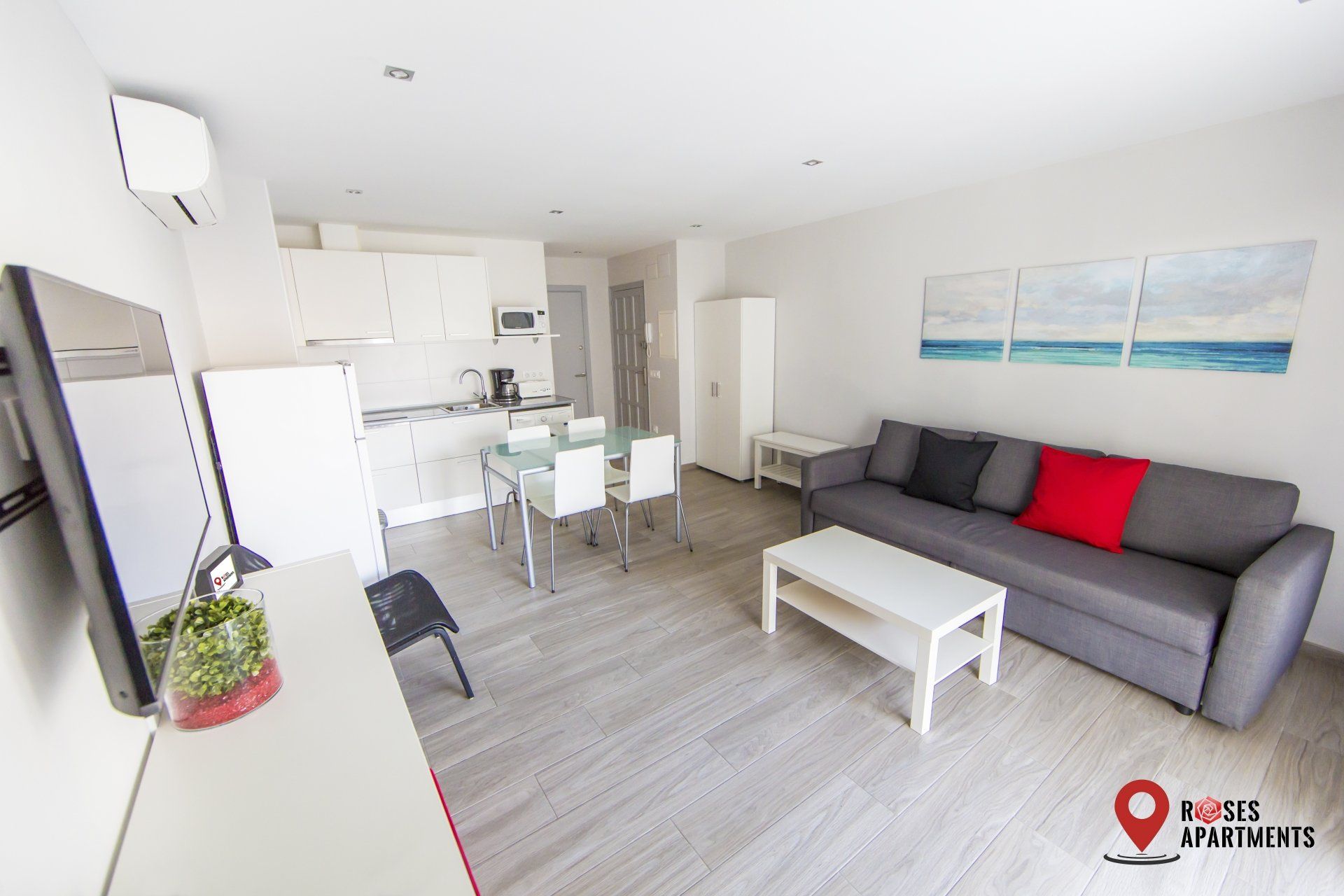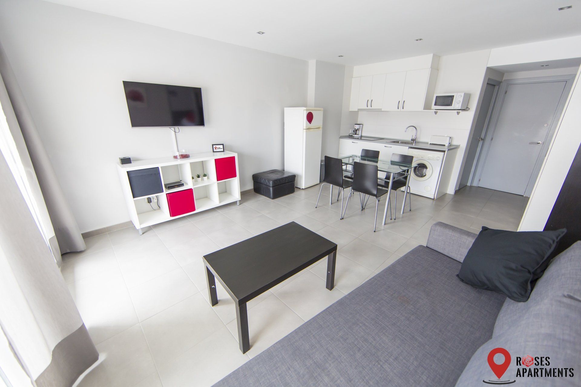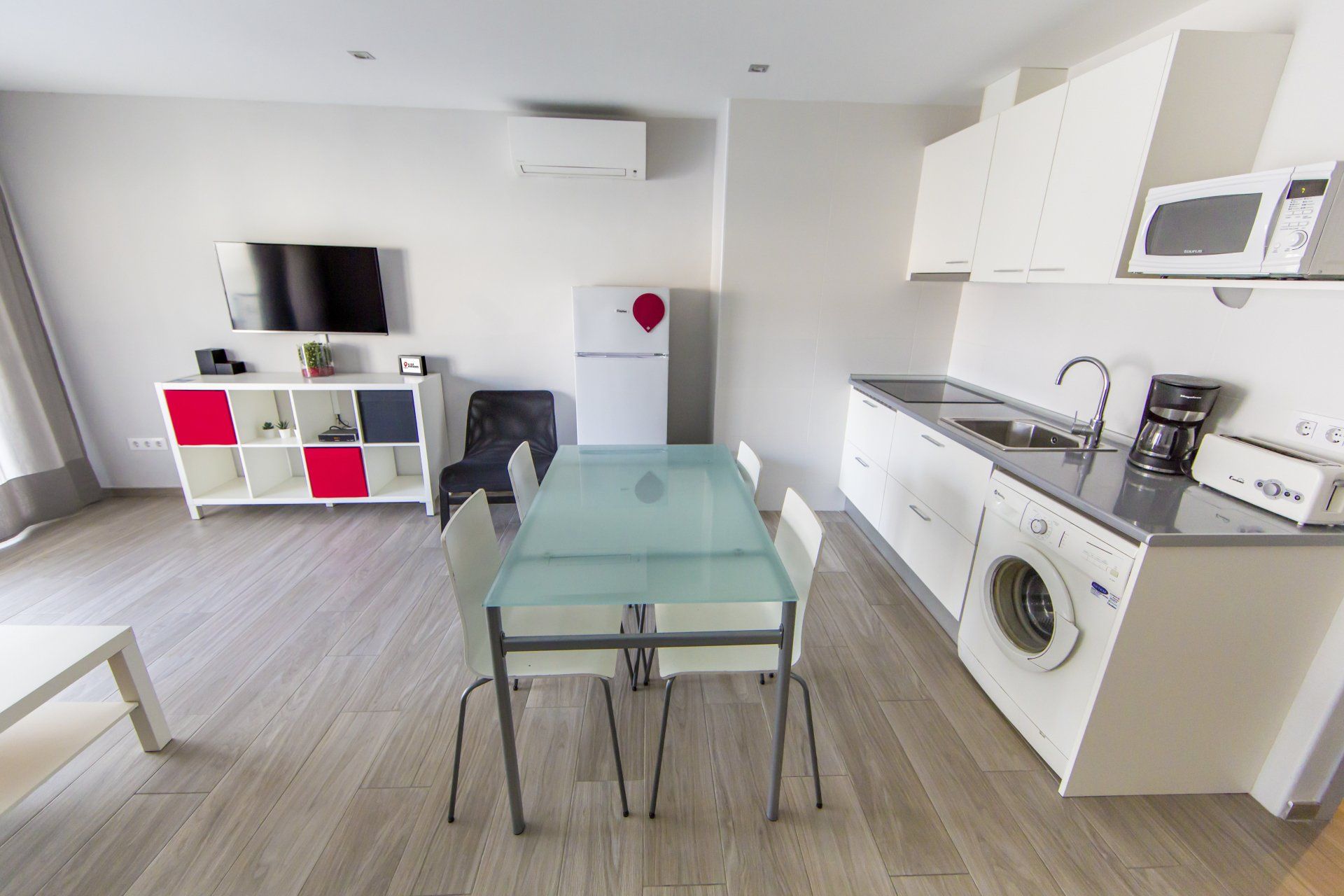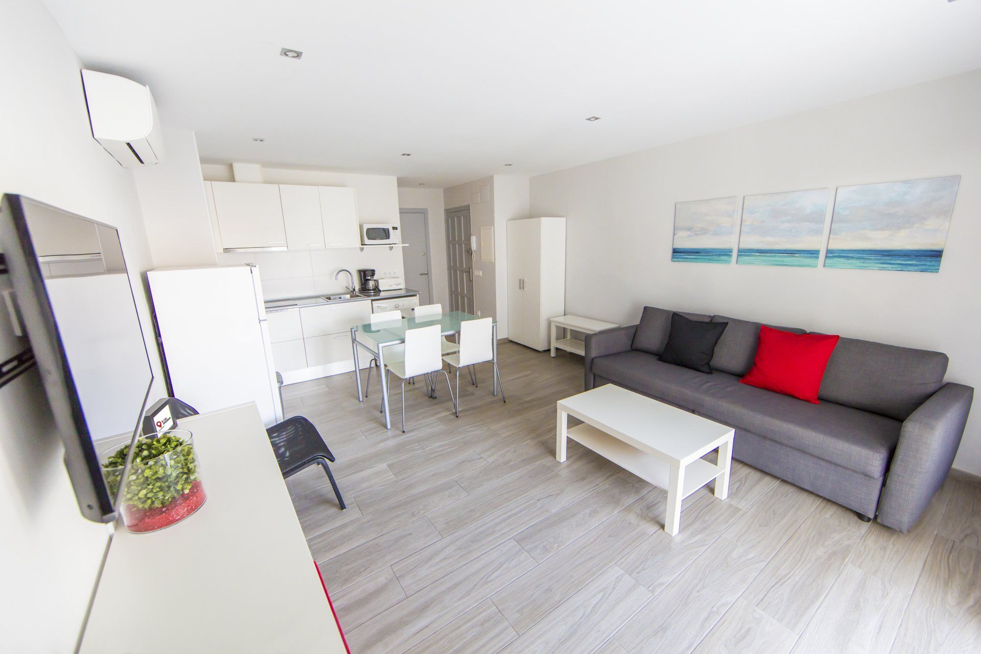 El nostre apartament 1 està distribuït en un saló amb cuina americana, 1 habitació i 1 bany. Amb una superfície total de 46 m2.