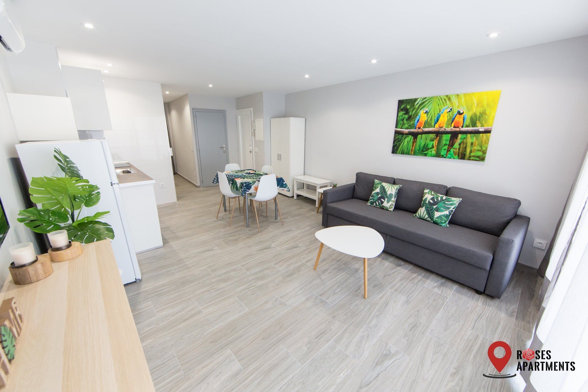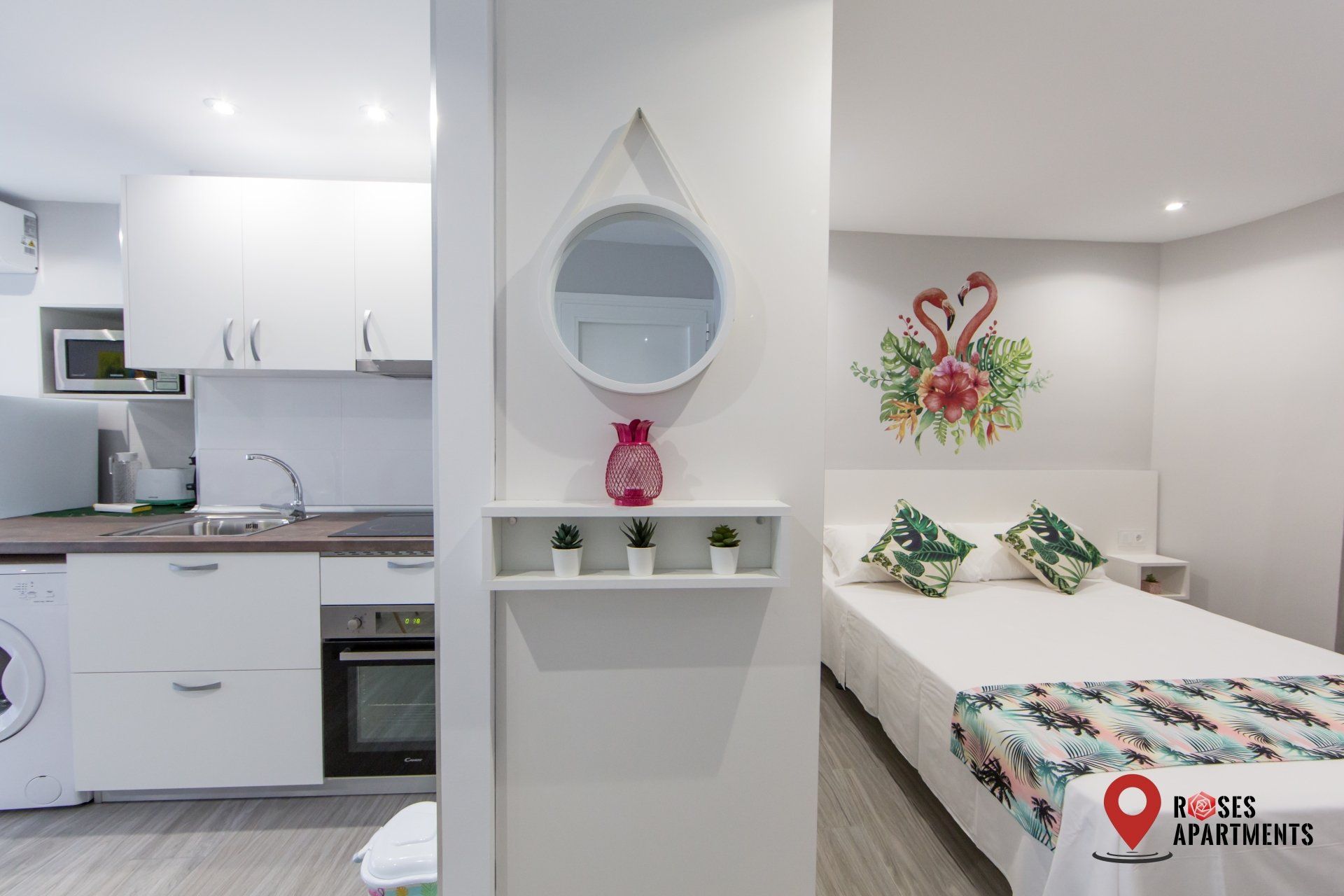 Our apartment is distributed in an open space that includes the living room with an open kitchen and the bedroom with a double bed. The bathroom is separate.